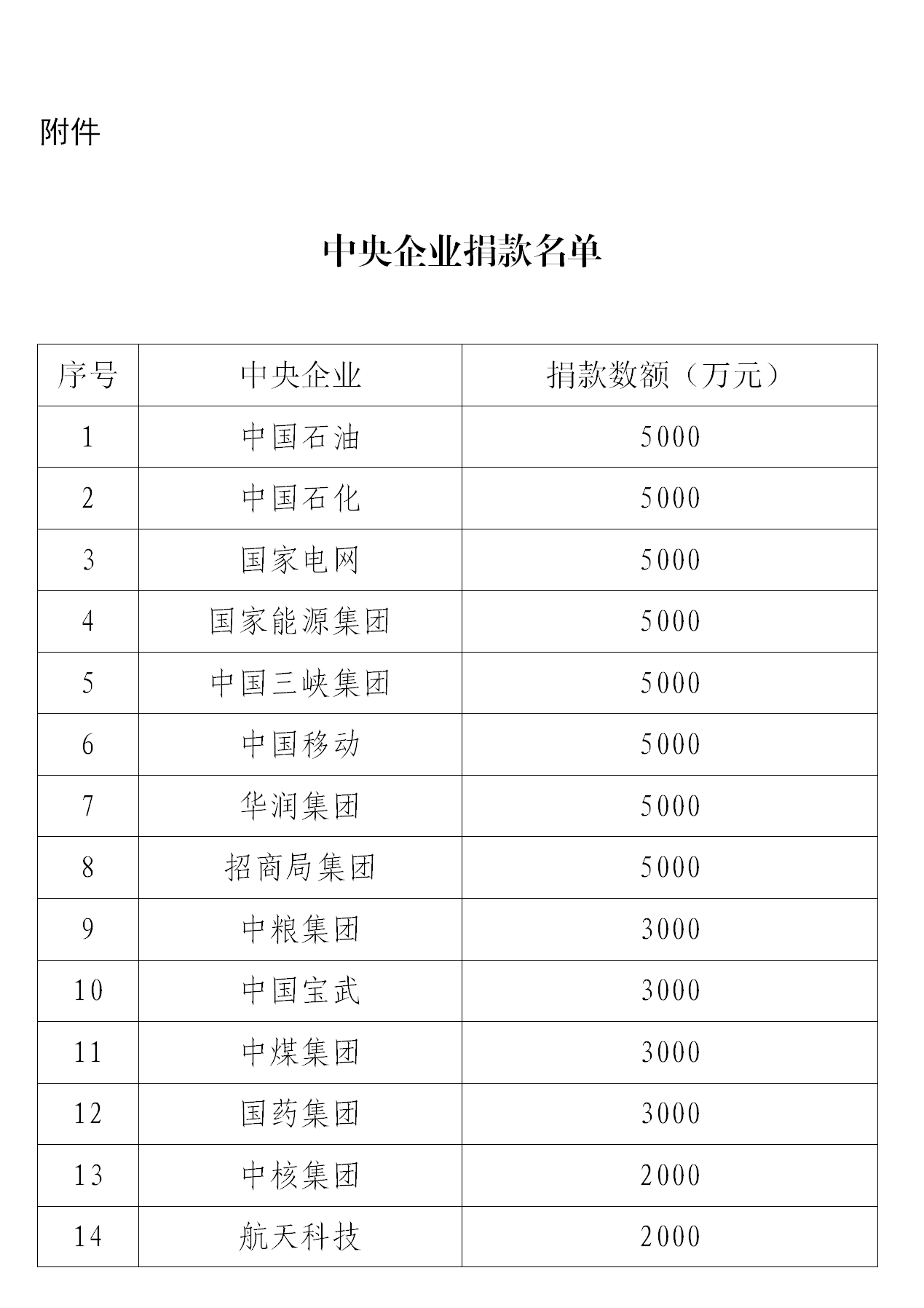 附件:中央企業(yè)捐款名單