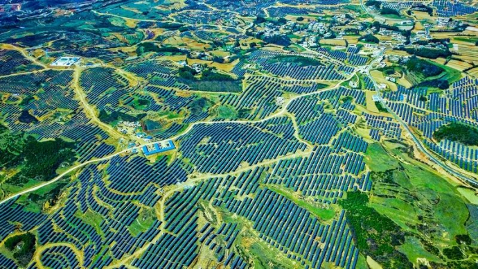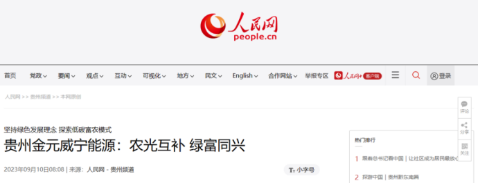 9月10日,人民網(wǎng)刊發(fā)《堅(jiān)持綠色發(fā)展理念 探索低碳富農(nóng)模式?貴州金元威寧能源:農(nóng)光互補(bǔ) 綠富同興》一文。報(bào)道稱,板上發(fā)電、板下種植,這是貴州威寧自治縣探索的光伏+農(nóng)業(yè)新模式:將太陽(yáng)能發(fā)電組件與農(nóng)業(yè)設(shè)施、農(nóng)業(yè)種植養(yǎng)殖相結(jié)合,在山地間采用高支架和大間距布置光伏陣列,并利用光伏板下空間種植生長(zhǎng)條件適宜的糧食化農(nóng)作物,形成融合互補(bǔ)之勢(shì)。成為當(dāng)?shù)赝苿?dòng)“工業(yè)反哺農(nóng)業(yè)、農(nóng)業(yè)賦能工業(yè)”有益循環(huán)的生動(dòng)實(shí)踐。以下為報(bào)道全文: