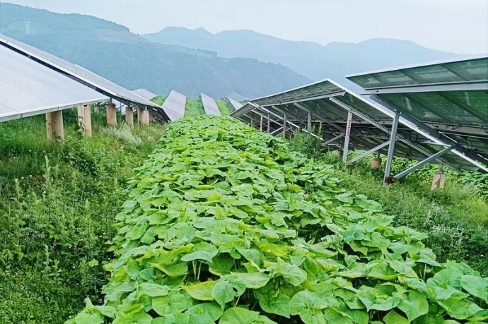 板上發(fā)電、板下種植,這是貴州威寧自治縣探索的光伏+農(nóng)業(yè)新模式:將太陽(yáng)能發(fā)電組件與農(nóng)業(yè)設(shè)施、農(nóng)業(yè)種植養(yǎng)殖相結(jié)合,在山地間采用高支架和大間距布置光伏陣列,并利用光伏板下空間種植生長(zhǎng)條件適宜的糧食化農(nóng)作物,形成融合互補(bǔ)之勢(shì)。
