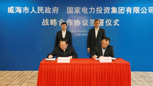 4月12日,國(guó)家電投黨組書記、董事長(zhǎng)錢智民在國(guó)家電投國(guó)和一號(hào)仿真國(guó)際交流中心會(huì)見山東省威海市委書記張海波。威海市委副書記、市長(zhǎng)閆劍波,集團(tuán)公司黨組副書記、董事祖斌參加會(huì)見,并代表雙方簽訂戰(zhàn)略合作協(xié)議。