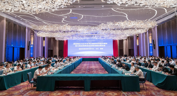 4月18日,國務(wù)院國資委和海南省委、省政府在?谡匍_貫徹落實(shí)習(xí)近平總書記重要指示批示精神、奮力推進(jìn)海南自由貿(mào)易港建設(shè)座談會(huì)。國務(wù)院國資委黨委書記、主任郝鵬,海南省委書記沈曉明,省長馮飛出席并講話。江毅參加座談會(huì)。