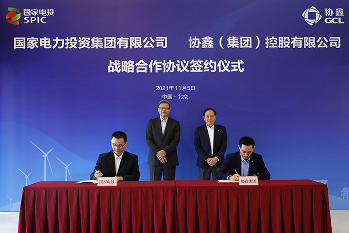 11月5日,在國家電投董事長、黨組書記錢智民,協(xié)鑫集團(tuán)董事長朱共山的共同見證下,國家電投總經(jīng)理助理農(nóng)剛與協(xié)鑫集團(tuán)副董事長、協(xié)鑫集成科技股份有限公司副董事長兼總裁舒樺代表雙方簽署《全面戰(zhàn)略合作協(xié)議》。