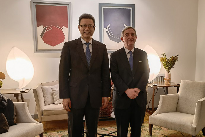 11月23日,國(guó)家電投董事長(zhǎng)、黨組書記錢智民在西班牙駐華大使館拜會(huì)西班牙駐華大使德斯卡亞。雙方圍繞著綠色清潔發(fā)展以及中西企業(yè)投資合作和創(chuàng)新合作進(jìn)行了深入交流,達(dá)成廣泛共識(shí)。國(guó)家電投國(guó)際部,中電國(guó)際有關(guān)負(fù)責(zé)同志參加會(huì)見。