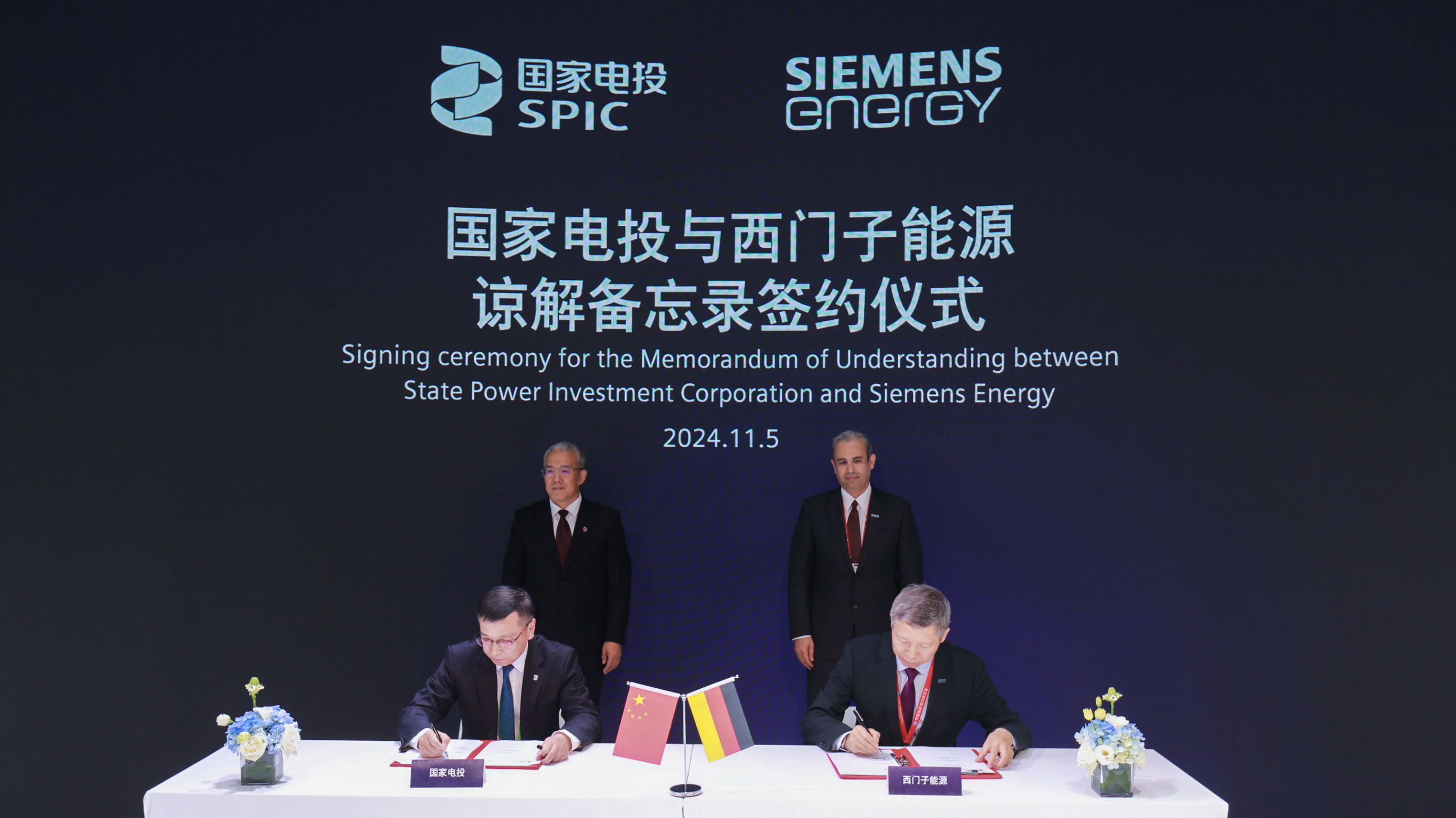 11月5日,國(guó)家電投與西門子能源在國(guó)家會(huì)展中心(上海)舉行諒解備忘錄簽約儀式。國(guó)家電投董事、總經(jīng)理栗寶卿,西門子能源總裁兼首席執(zhí)行官克里斯蒂安·布魯赫、執(zhí)行委員會(huì)成員卡瑞姆·阿明出席簽約儀式。國(guó)家電投副總經(jīng)濟(jì)師李雪東,西門子能源全球高級(jí)副總裁、大中華區(qū)負(fù)責(zé)人姚振國(guó)代表雙方簽署諒解備忘錄。