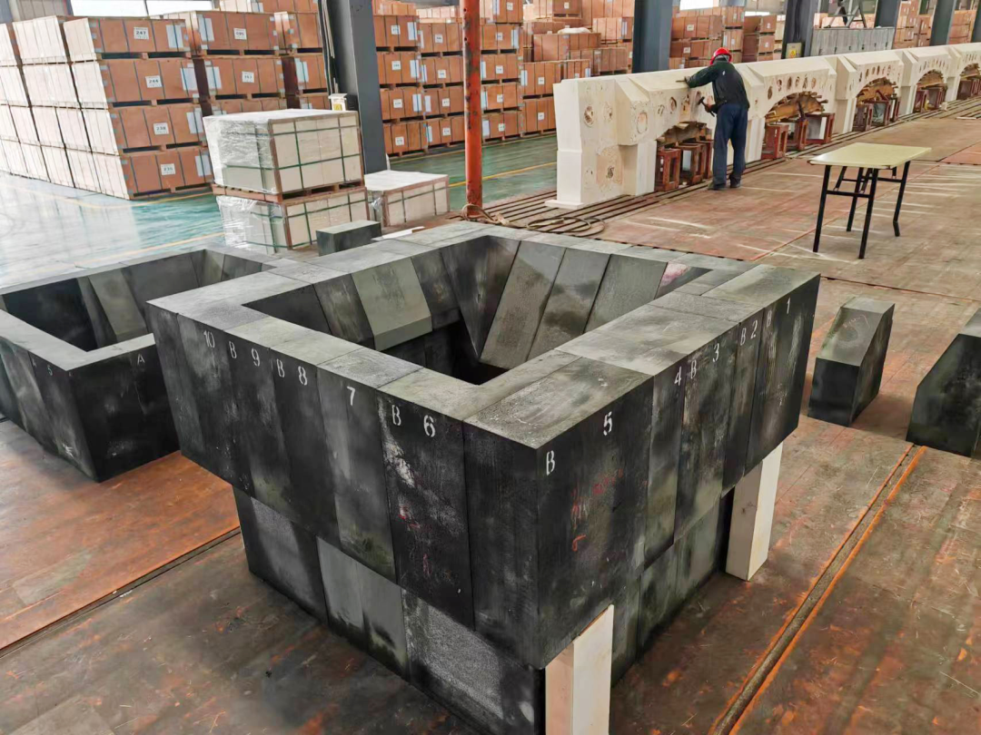 ▲預(yù)組裝的焦耳爐爐襯。圖片來源:瑞泰科技