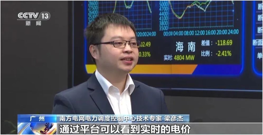 南方電網(wǎng)電力調(diào)度控制中心技術(shù)專家 梁彥杰:參與交易的各方,通過平臺可以看到實時的電價,就像在超市買東西一樣,每天的價格可能會不同,市場主體可以根據(jù)需要,自由選擇不同產(chǎn)地的商品,自由買單。