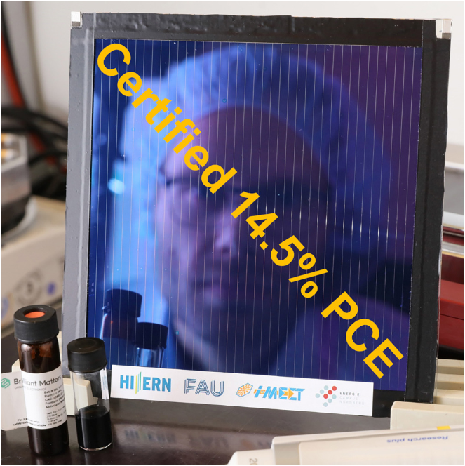 新的OPV組件發(fā)表在《焦耳》雜志一篇題為《大面積有機(jī)光伏組件實(shí)現(xiàn)14.5%效率,獲世界紀(jì)錄認(rèn)證》的論文中。該研究團(tuán)隊(duì)由來自德國紐倫堡理工學(xué)院、加拿大OPV材料供應(yīng)商Brilliant Matters和中國華中科技大學(xué)的學(xué)者組成。