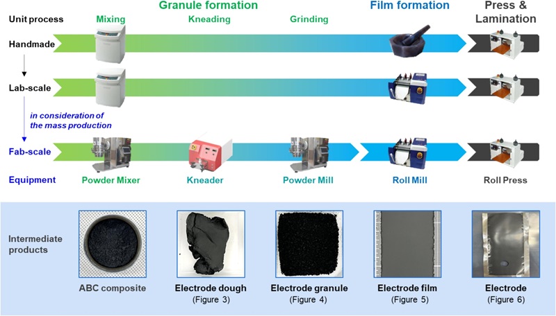 干電極制造工藝概述:本研究中使用的單元工藝、設備和中間產品。