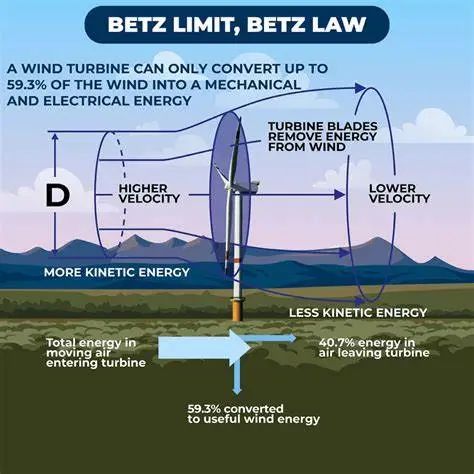 貝茨極限(Betz’s limit)是指在風能轉(zhuǎn)換過程中,風力發(fā)電機最高可以達到的理論轉(zhuǎn)換效率。根據(jù)這個理論,風力發(fā)電機的最大轉(zhuǎn)換效率為59.3%,也就是說,無論風力多強,風力發(fā)電機最多只能將風能的約59.3%轉(zhuǎn)換為電能。